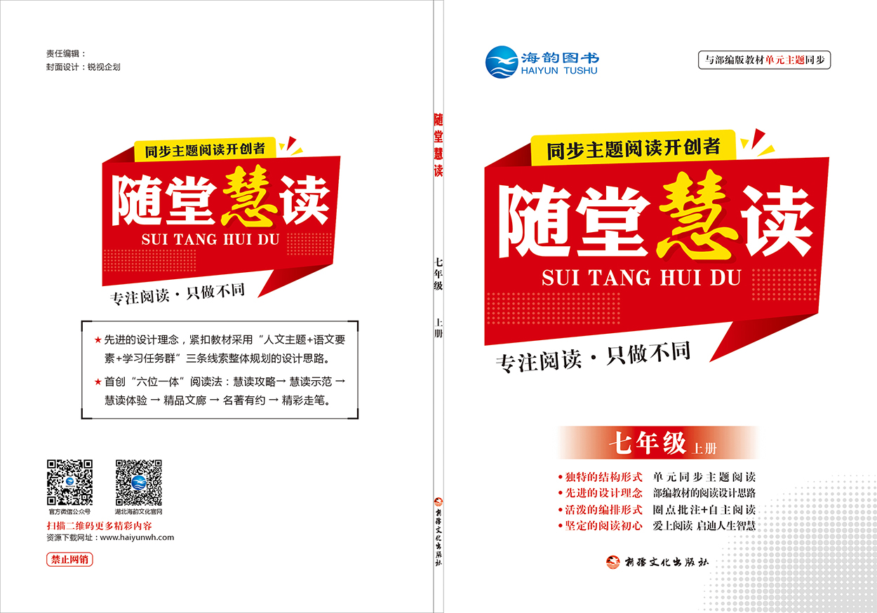 《隨堂慧讀》依靠教材的體例,首創(chuàng)“六位一體”閱讀法:①慧讀攻略→ ②慧讀示范 → ③慧讀體驗(yàn) → ④精品文廊 → ⑤名著有約 →⑥ 精彩走筆。